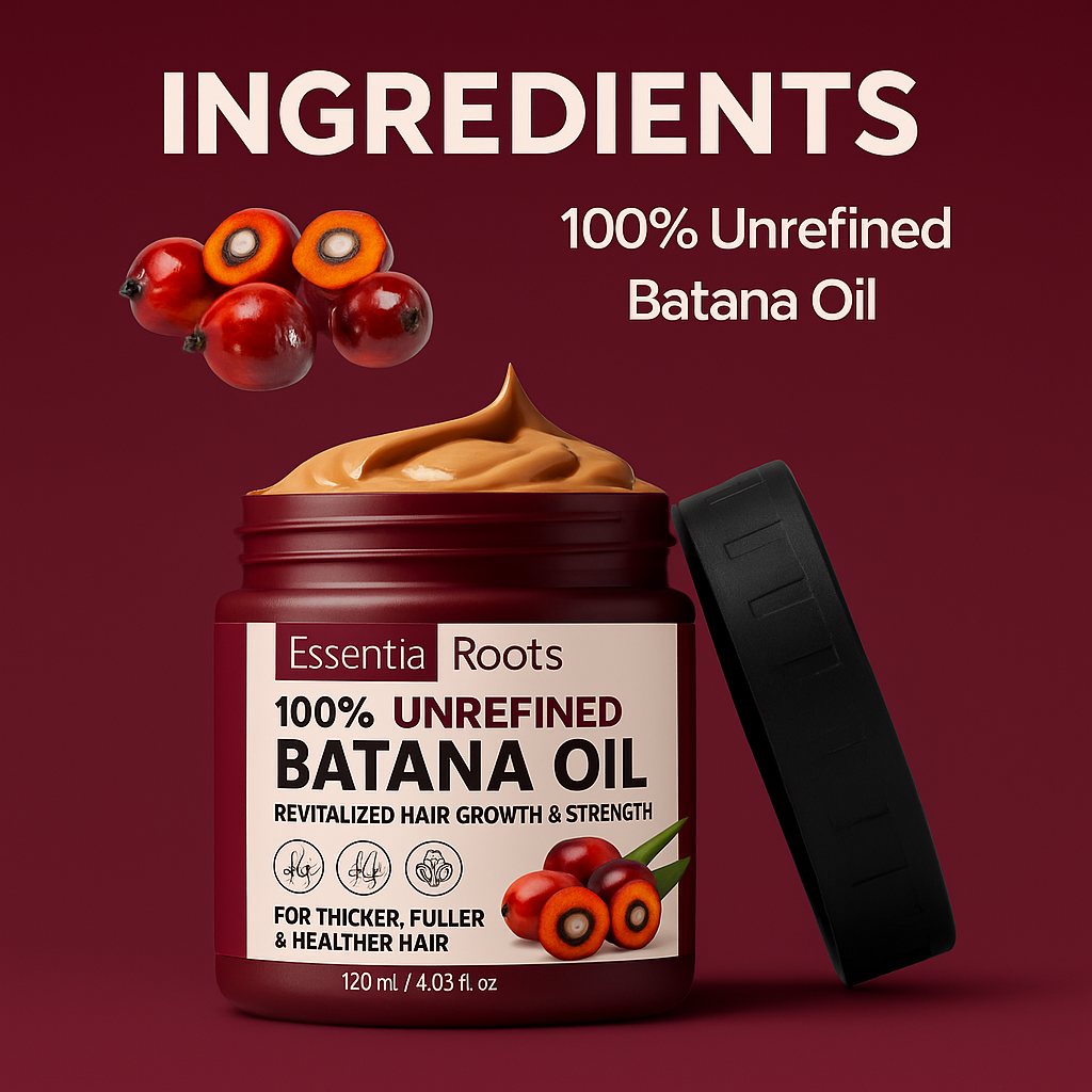 Our formula is powered by 100% Unrefined Batana Oil, a single, carefully sourced ingredient that targets hair growth holistically.